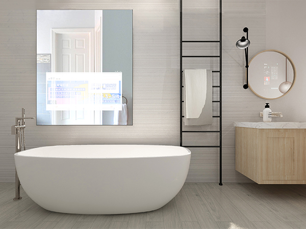 智能鏡開啟后,鏡面上日歷、天氣、溫度等信息,還有熱點新聞推送、日程計劃提醒等統統一目了然,在衛生間洗漱的同時,可以在智能鏡子上看新聞、刷熱劇輕松實現,智能鏡還能陪你聊天隨時為你點歌。具有防污防水防霧功能,可以在潮濕環境運行,自動加熱去除霧氣保證鏡面時刻處于待命工作狀態,采用防污技術打造防污觸摸屏,不用擔心觸摸鏡子時沾上手指印或者其他污跡。