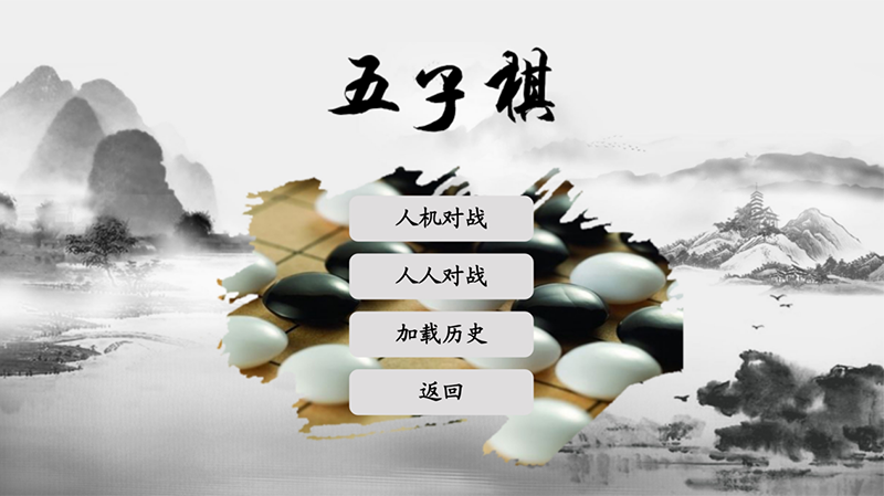 “是世界智力運動會競技項目之一,是一種兩人對弈的純策略型棋類游戲,通常雙方分別使用黑白兩色的棋子,下在棋盤直線與橫線的交叉點上,先形成5子連線者獲勝。或者自己連成五枚棋子就吃掉對方最近的一枚棋子。被吃的棋子還給對方繼續使用 。最后以先出完所有棋子的一方為勝利者。自己所被對方吃的棋子的那一格自己不能再放棋子,對方可以放。但是吃子不能吃對方已經連成五子的其中一枚棋子,除非對方全部棋子都連成了五子。棋具與圍棋通用,起源于中國上古時代的傳統黑白棋種之一。主要流行于華人和漢字文化圈的國家以及歐美一些地區,是世界上最古老的棋。容易上手,老少皆宜,而且趣味橫生,引人入勝;不僅能增強思維能力,提高智力,而且富含哲理,有助于修身養性。”電子棋桌五子棋首頁:可選擇對戰模式或加載之前保存的棋局。