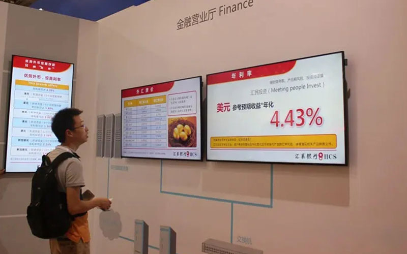 廣告機數(shù)字標牌,金融機構能更好的宣傳品牌形象與業(yè)務,用戶利用該廣告機數(shù)字標牌系統(tǒng)播放基準利率等金融信息、向客戶展示和介紹銀行業(yè)務與活動通知、播放統(tǒng)一企業(yè)文化即形象宣傳片等。