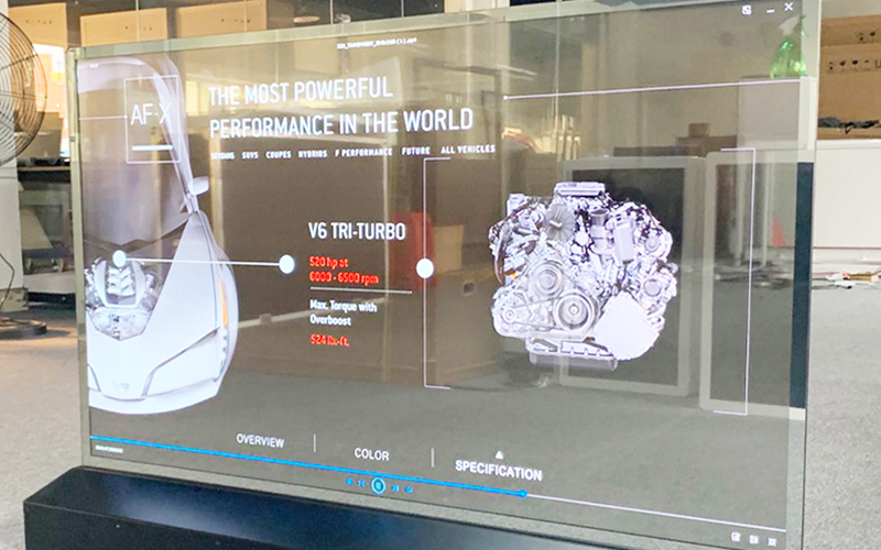 OLED透明屏的透明度非常高,可以達到70%以上的透明度,這使得它能夠在透明表面上顯示圖像和文字,同時不會遮蓋背景。OLED透明屏還具有更好的自發光特性,可以實現更高的亮度,并消除了傳統液晶屏的泄漏問題。